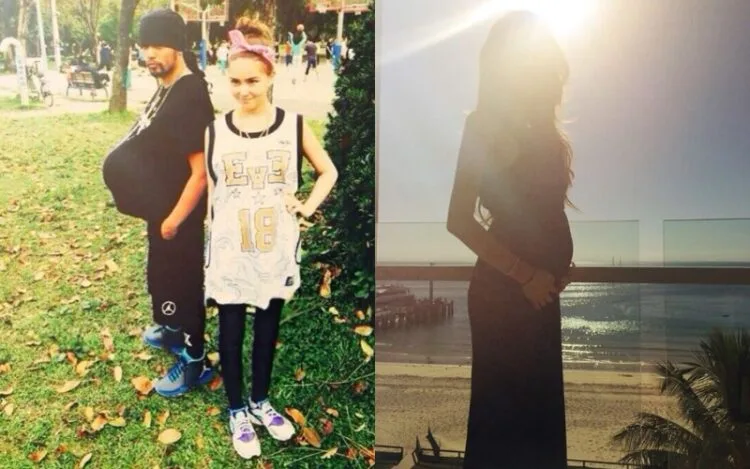 The 36-year-old singer posted a photo of himself posing with a ball under his shirt while standing next to his wife, who showed off her pregnancy bump in a matching basketball jersey. The photo was accompanied with a caption that read, “We’ll see who walks better with a ball,” which is a common Chinese phrase to describe pregnancy.