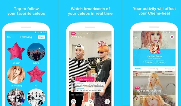 - Chemi-beat – A relationship index between a celebrity and a user as beat count. The more often that users watch videos of favorite celebrity broadcasts and participate in activities on V, the higher their Chemi-beat level will climb. The higher the Chemi-beat, the higher the user’s chance to win the event that the celebrity is hosting.