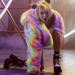 Min and Jo Kwon are dressed in rainbow-coloured fur coats while Hyoyeon can be seen wearing a shiny sequined sleeveless top.