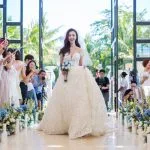 The picturesque nuptials was held at Mulia Resort in Nusa Dua, and the theme was light and airy, with beautiful blue floral decorations set up to form a gorgeous garden arrangement. A towering blue cake and a large blue stage was also featured for the joyous festivity.