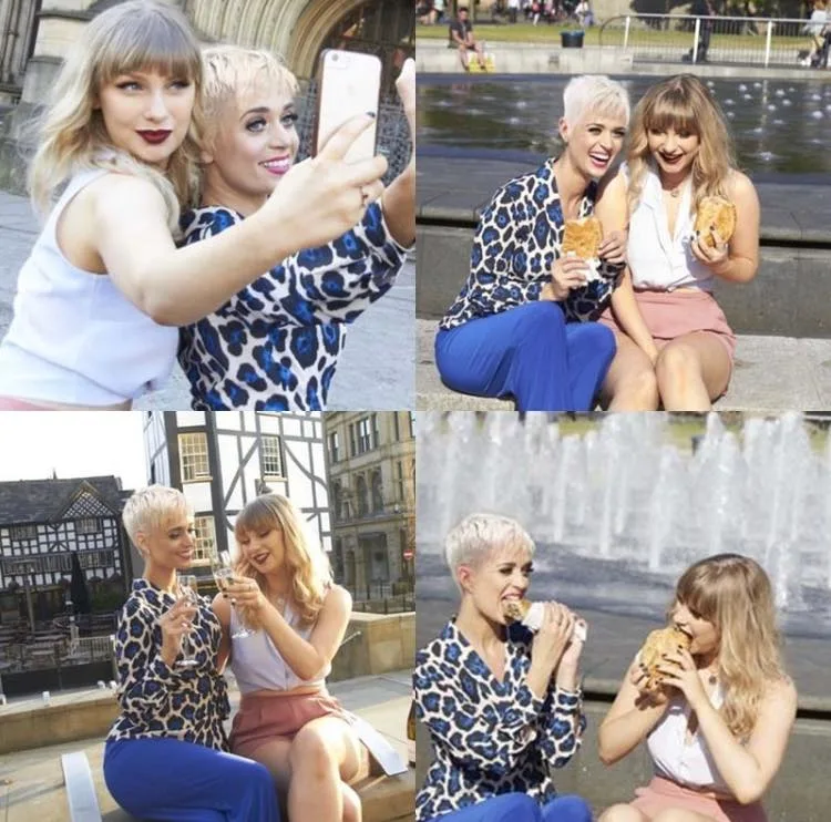 These lookalikes come across really convincing don’t they? The duo certainly turned heads during their fun day out in Manchester. “Taylor” came prepared for the hot weather as she was seen in a casual white crop-top and flattering pink shorts. “Katy”, on the other hand, wore stylish electric blue trousers and leopard print top.