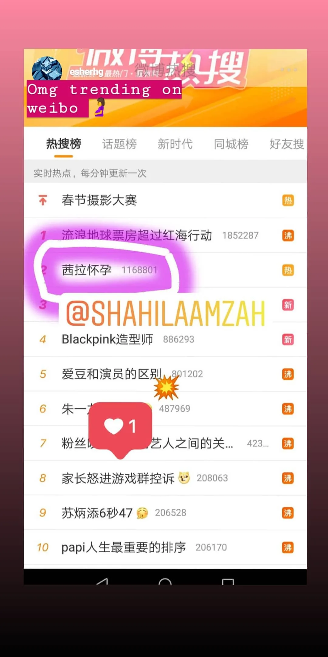 After announcing the news, Shila’s pregnancy becomes one of the trending topics in Weibo with many fans congratulating her.