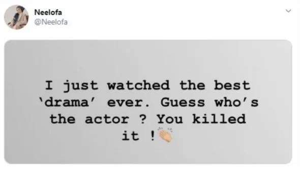 Neelofa – or known as Lofa in short – posted a string of online status on her Twitter account, “I just watched the best ‘drama’ ever’. Guess who’s the actor? You killed it!” the 30-year-old actress wrote, before adding, “Now, the award for best actor goes to..”