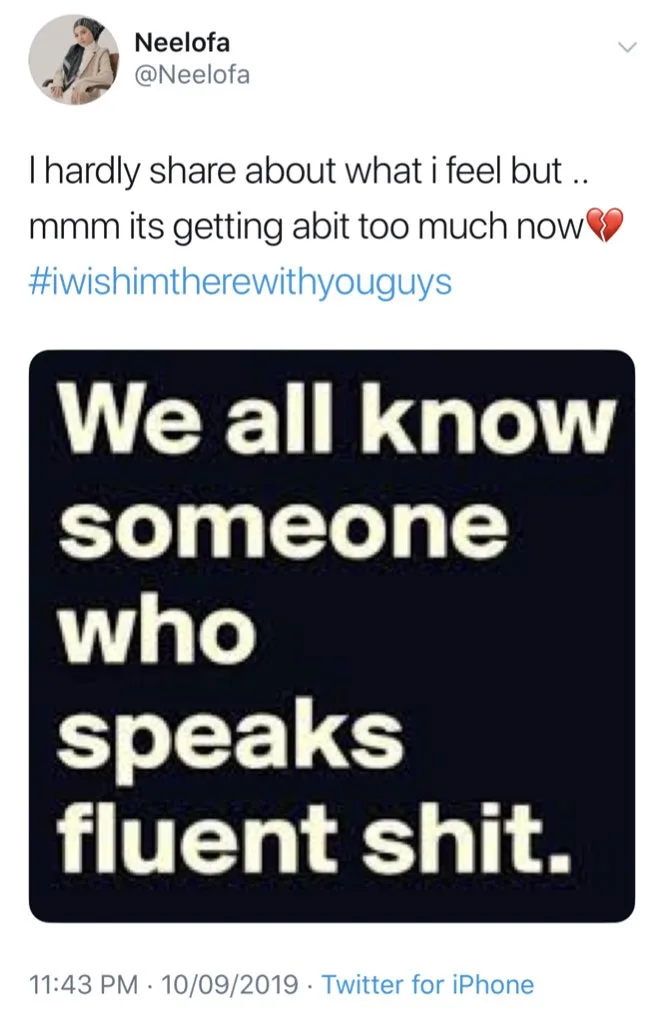 The “MeleTOP” TV host further added in her recent tweet, “I hardly share about what I feel… Mmm it’s getting a bit too much now”, along with a photo of a quote that reads, “We all know someone who speaks fluent shit.”