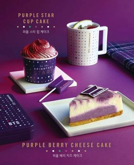 This project with the famed coffeehouse chain will not be complete without their tasty food and drinks. In this case, five new treats have been introduced specifically for this campaign. This include the purple star cupcake, purple berry cheesecake, blueberry star macaroon, vanilla star macaroon, and the purple star poundcake, with a sweet BTS-labelled chocolate placed on top of the signature sweet delicacies.