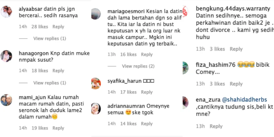 Thus, local netizens have begun flooding the comments section of both Aliff and Shahida’s social media accounts with several questions and speculations. Apart from that, a few concerned fans also wished for their dispute to be resolved, especially for the sake of their children.