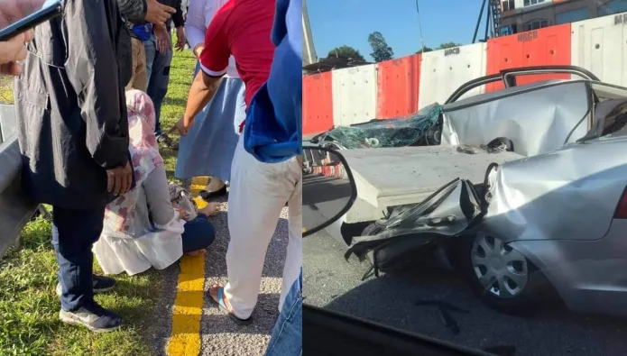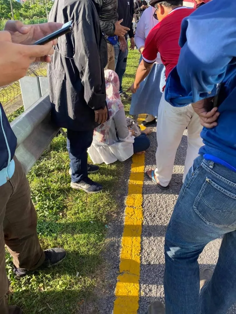 As aforementioned, thankfully the female driver made it out alive. The top half of the silver Waja was severely crushed. The woman was brought to the side of the road where several passerby got down to check on her as well as to offer help. She was sent to Hospital Universiti Kebangsaan Malaysia (HUKM) to seek immediate treatment.