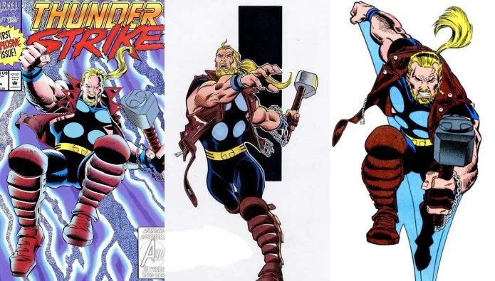 Yes, Thor’s jacket might be rather Guardians-esque, but the ensemble comes to mind an older Thor – Eric Masterson, or better known as Thunderstrike. The character wielded Mjolnir for a brief period in the early 1990s. It remains to be seen whether “Thor: Love and Thunder” will be connected to the Thunderstrike storyline.