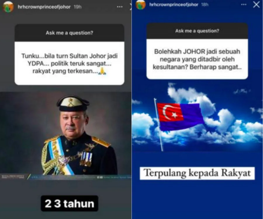 Tunku Mahkota Johor (TMJ, Tunku Ismail Idris, had another “Ask Me A Question” session on his Instagram during the long weekend.