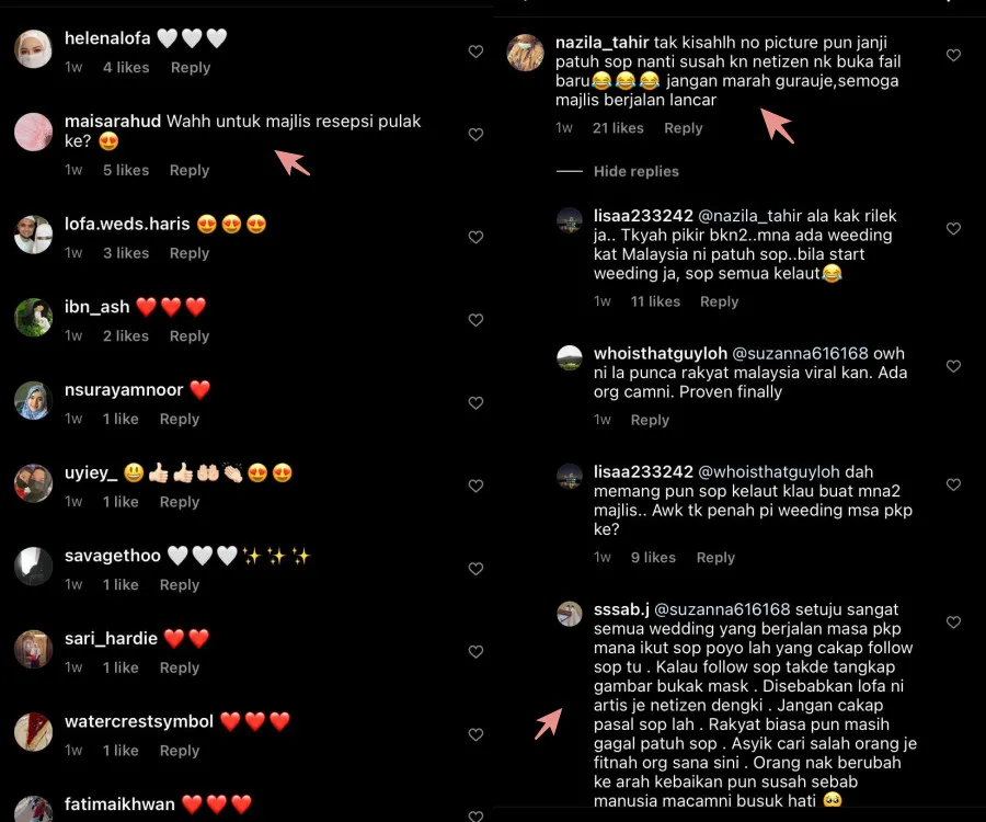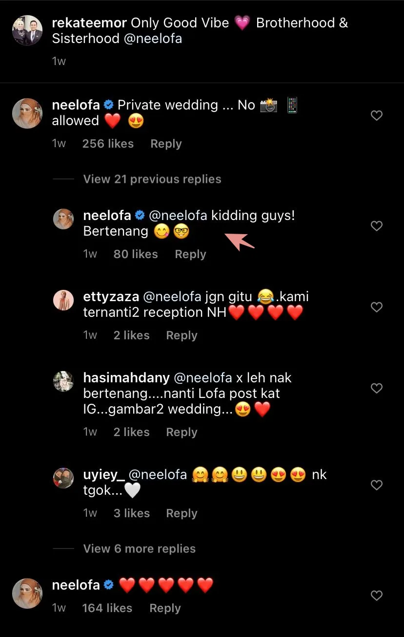 In addition, Lofa herself could also be seen leaving a comment that the upcoming event would be a private one, with “no cameras and handphones allowed,” adding into everyone’s speculations. It didn’t take long before plenty of fans began fussing over the statement left by the hijab entrepreneur.