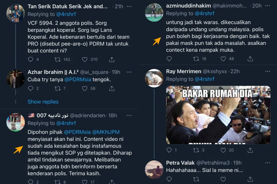Instafamous personality Hafiz Mahamad has come under massive fire once again after he posted a video featuring 3 frontliners (2 of them are police officers and another one is an army officer) on his social media page recently.