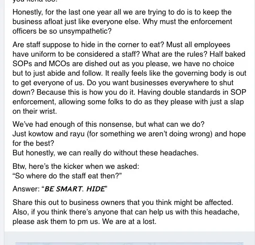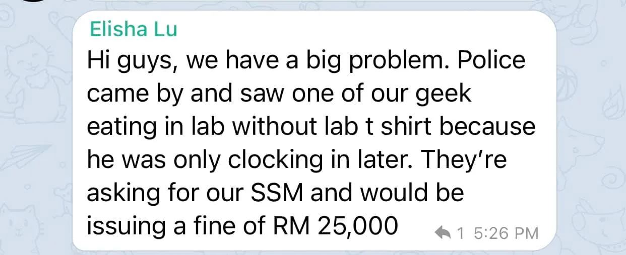 “They took a photo of him, and asked him to come outside. They then said that it was an MCO violation because he was dining in, and told us to meet at the police station nearby as they were going to issue a RM25,000 fine,” co-founder Renyi Chin was quoted as saying. He also posted a screenshot of his WhatsApp conversation on Facebook.