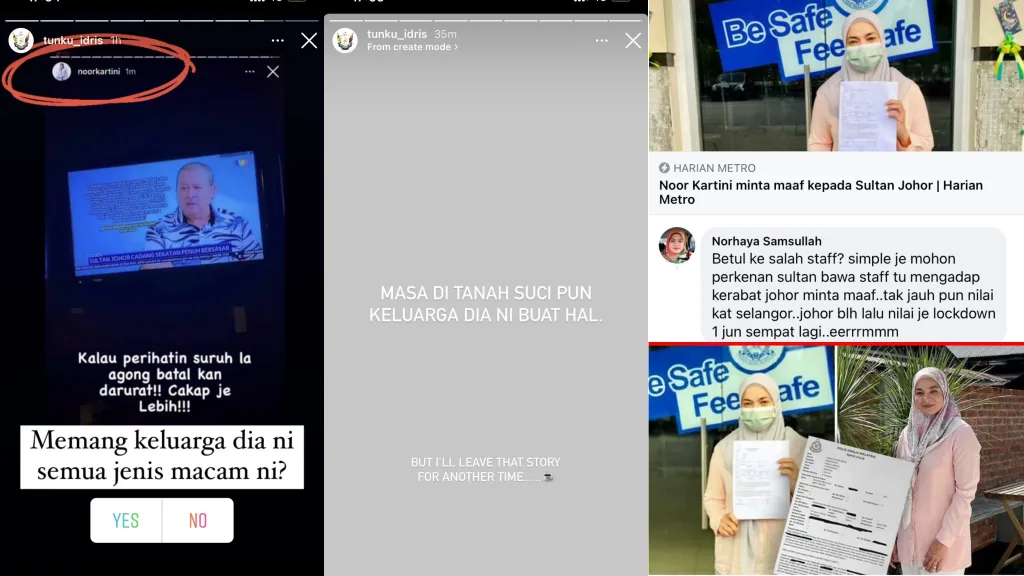 To our surprise, the controversy even caught the attention of Tunku Temenggong Johor Tunku Idris Iskandar‘s attention! His Highness took to his IG Story to share a screenshot of Kartini’s statement and prompted a question for his followers, “Has her (Neelofa’s) family always been like this?”