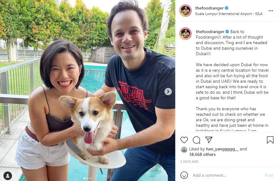 The Canadian YouTuber came to Kuala Lumpur in November 2019 and has enjoyed his stay here for about two years. He’s been living and enjoying life (and food) in Malaysia with his wife Ting Ting and their beloved corgi Muffin. In his Instagram post, Trevor explained they have chosen Dubai as their next destination since it is a central travel location that is rich in food. The Food Ranger also explained he would be taking off first to find a place for the trio. However, he promised this is not goodbye. “We will be back,” he declared. “(Malaysia) is my favourite place in the world!”