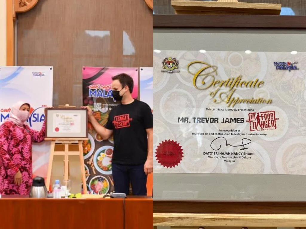During his two years here, Trevor traveled around Malaysia showcasing state-specific flavours to his several million followers on Facebook, YouTube and Instagram. Tourism Malaysia recognised his work and thanked him with a certificate of appreciation given by Dato’ Sri Nancy Shukri.