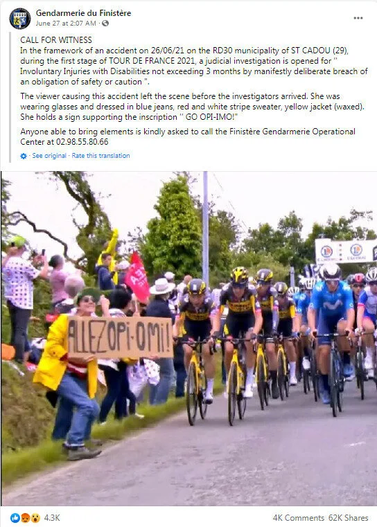 Martin stated he had seen the lady and the sign, but had no time to react. “I can’t understand how people can do things like that,” he said. “We’re here to race our bikes- it’s not a circus.” Although this isn’t the first time fans have caused accidents during the tour, authorities have decided to crack down hard on her.