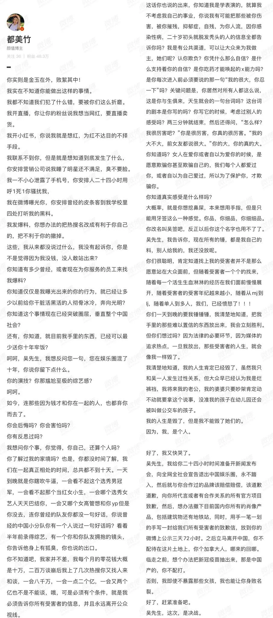 [trending] Du Meizhu takes an interview with Wangyi revealing more details on her allegations against #KrisWu (summery in P2) + some brands start privatising their posts with Kris