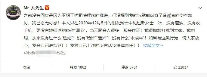 “Many people were present that day, they can all testify on this!” Wu further added. “I’m so sorry for disturbing everyone. I’m stating that I’ve never ‘picked concubines’, never ‘seduced, drugged, or raped’ anyone. There were no underage girls! If I behaved like this, everyone please rest assured, I would put myself in prison! I take legal responsibility of everything I stated just now.”