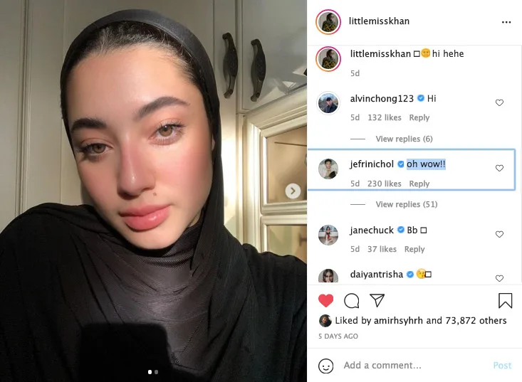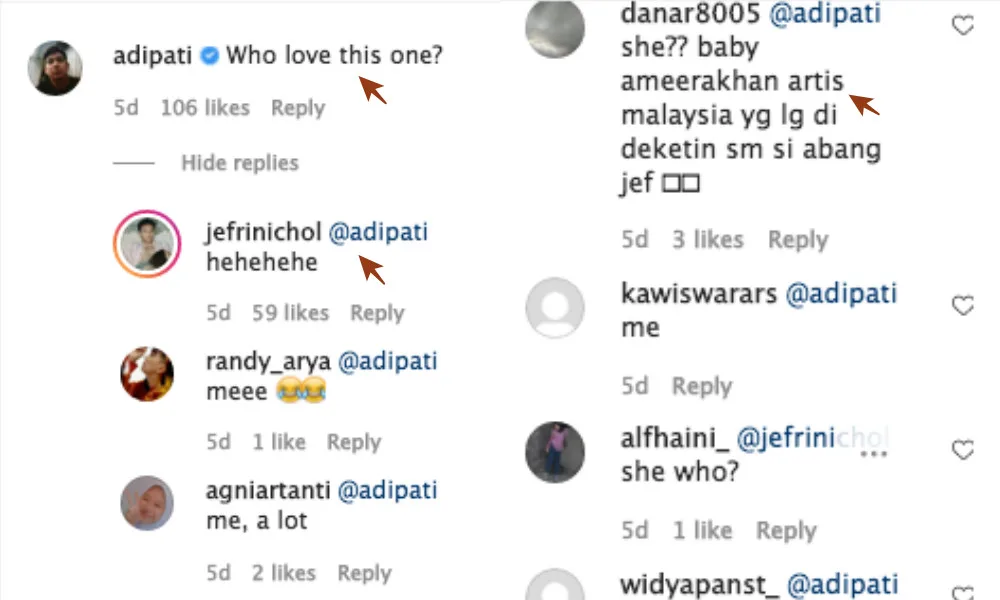 - “Papi Chulo (Jefri) what are you doing here (Ameera’s comments section)?”