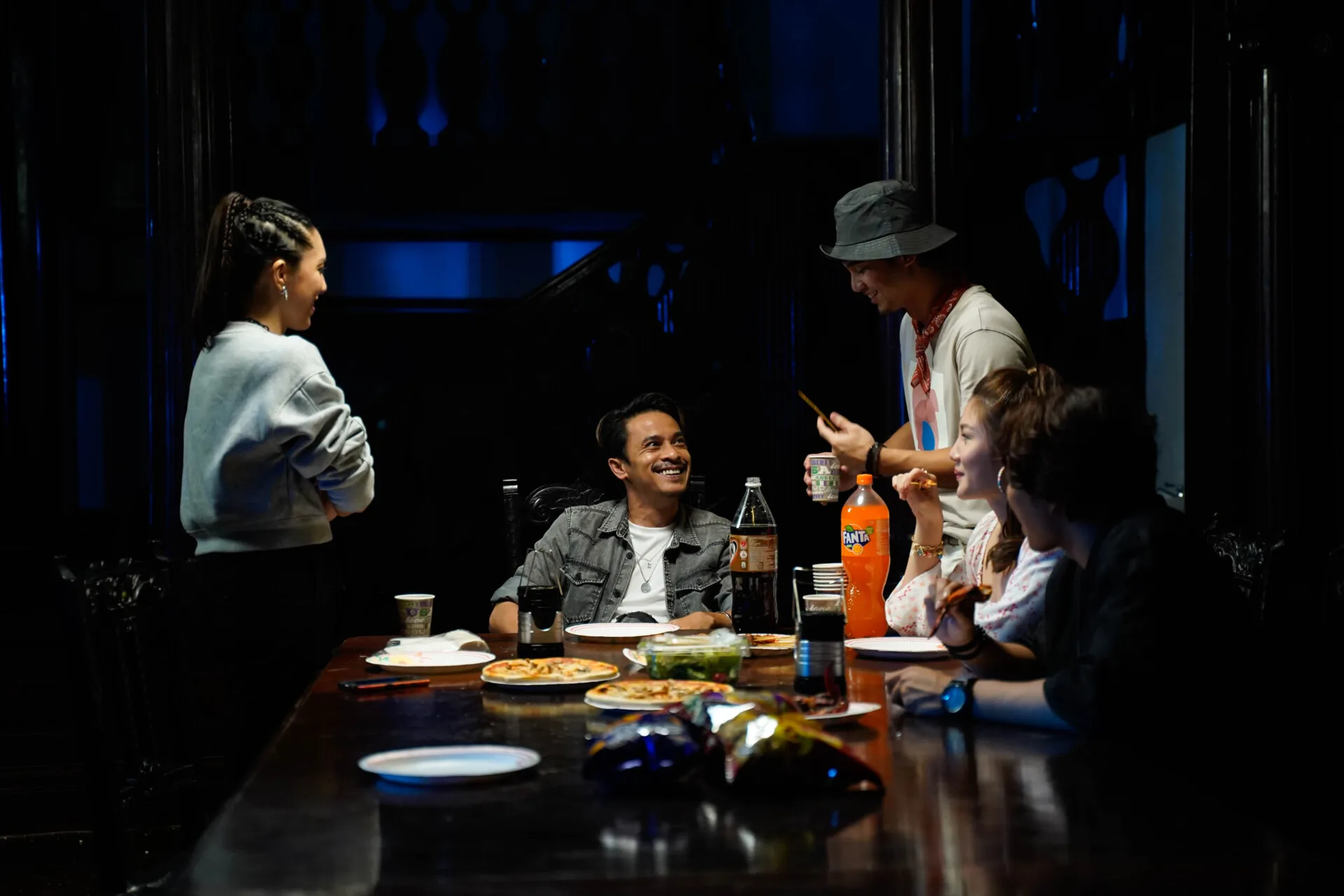 Zahiril Adzim: I think the “Ada Hantu” team was quite lucky and ‘protected’ from all these disturbances excluding this one particular time when I got hurt while filming. During filming, there was this one scene where I needed to kick down the door and jump into the room. So, during rehearsal, everything was set, as in we know the momentum of the jump, where to position myself during the landing and all the calculations have been set. So, when I jumped on the first take, I suddenly felt a force pushing me from behind. So, the calculations were missed when the extra force was applied. So I landed wrongly and sprained my ankle. The team was asking me if I was okay but I didn’t tell them the real story at the time because I’m the one who felt it. So, when we returned to the hotel, I told them what happened but I was still trying to think positively, maybe it was just my imagination. However, a week later, after I finished filming “Ada Hantu”, I went to shoot for a different film at the same location that we filmed the previous scene. And I experienced the disturbance in a more intense way. We were disturbed to the maximum level to the point that the entity made an appearance in front of us. I was filming for another horror movie at the time at the same bungalow, the same location that we had shot “Ada Hantu” and at the time I saw the entity standing behind a crew member. I was in disbelief because while filming “Ada Hantu”, we were fine.