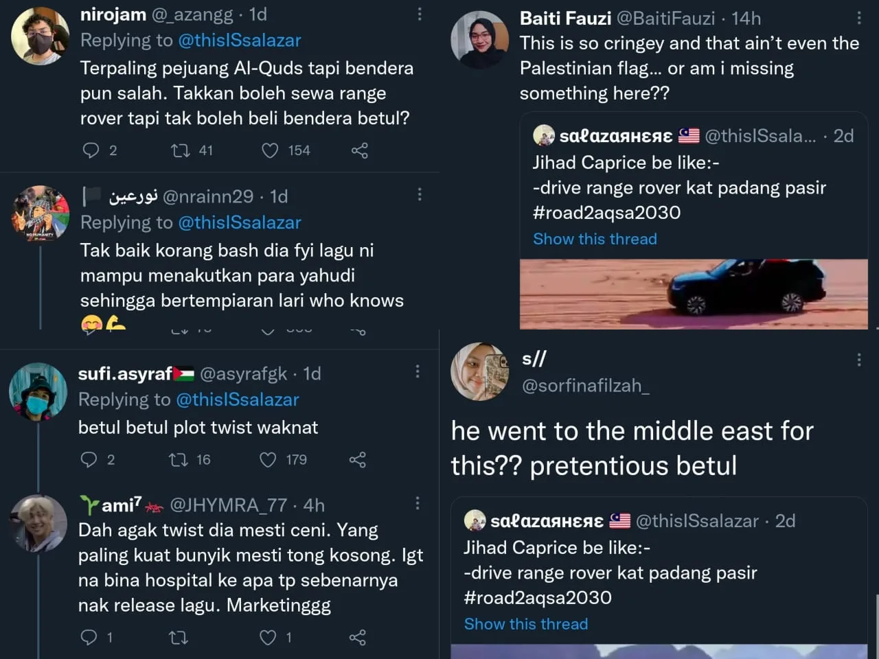 However, netizens began to question Caprice’s real intentions behind his so-called ‘jihad’ in Jordan after he posted a short clip of what seemed to be a music video of his new song on his Instagram. The short video shows the rapper singing in a Range Rover in the middle of the desert with several other individuals.
