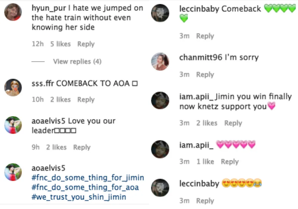 Aside from that, others also expressed their hopes for the 30-year-old celeb to make her comeback to the entertainment industry, whether with the rest of the AOA members or even as a soloist. Some of the fans urged Jimin to break her silence and speak up about the matter.