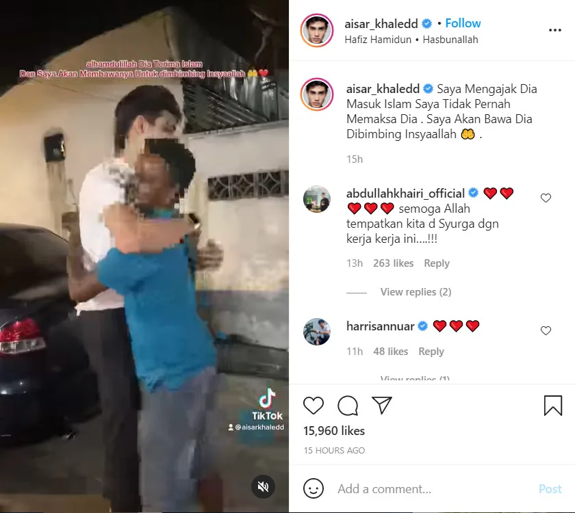 In lieu of the controversy, Aisar Khaled came forward to explain his side of the story. He took to Instagram to share another video to explain the situation. In his post, he stressed that the man voluntarily converted to Islam without any coercion as opposed to what have been claimed by some parties.