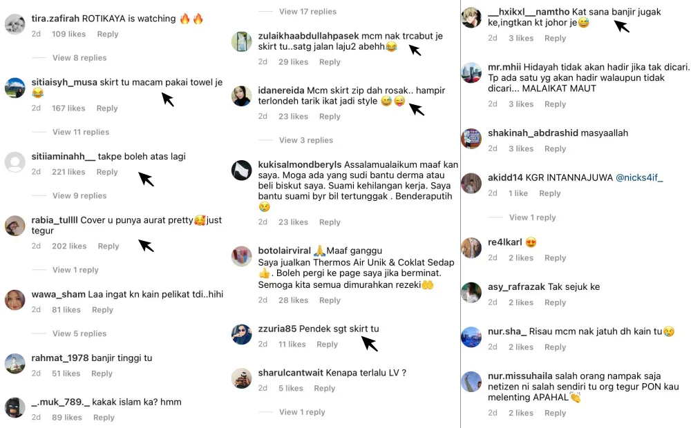 Unsurprisingly, the replies section has since been flooded with numerous comments left by netizens who were mostly displeased with Intan’s post on her social media. In this case, many of them called her out for her “inappropriate” choice of clothing. They also urged her to cover her aurat.