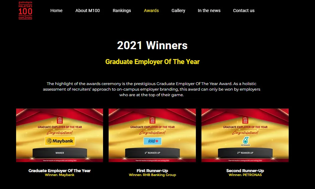 The results of the voting, which took place between January and September this year, were announced yesterday (17th November). Maybank claimed the top spot, as it has for the past four years. Rather unsurprising, as the banking industry is fairly popular among graduates. And this clearly hasn’t changed, even with the epidemic. What was surprising was that RHB Banking Group rose to second place after being ranked 10th last year (2020).