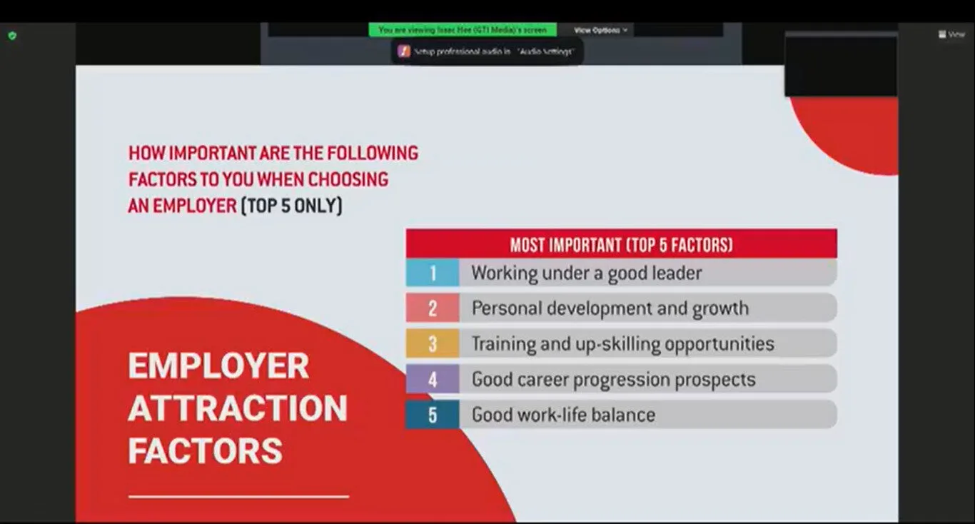 As seen from the factors, graduates and students are looking for ways to invest in themselves and grow both professionally and personally. Mr. Hee suggested giving those who will work alongside them a chance to engage with students and graduates. “So that they can actually see who they will be working with and what kind of leadership culture you have in your organisation,” he explained. After all, what better way is there to prove to potential employees you can match their needs than to show them?