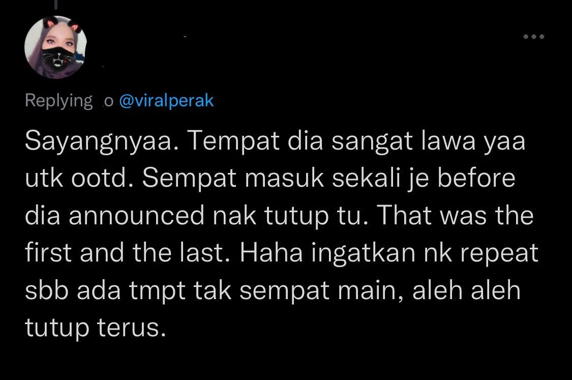 Netizens on Twitter shared their opinions on the current state of the park, and some shared their memories there. A man replied to the original tweet of @viralperak reminiscing back to 3 years ago when he organised a school field trip. He mentioned that the place was packed and most shops were still open for business.