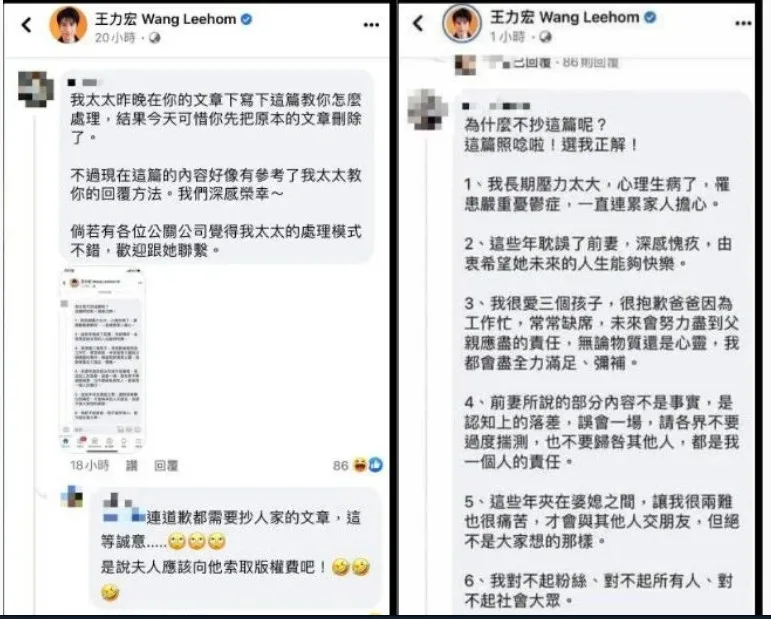 Turns out, Leehom may have plagiarised his apology from a netizen who commented on his previous post. A male netizen claimed that his wife had written a lengthy comment, advising him to take responsibility of his actions and to set a good example.