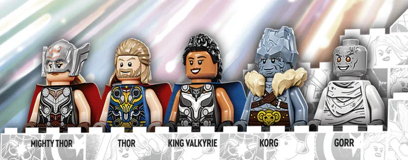 Thanks to a newly-released set of LEGO entitled “Goat Boat”, fans got a little tease of an intense battle between Gorr and Thor from the deck of the Asgardian ship. This marks the first official use of Gorr in a marketing material with the villain donning his mummy-like white drapes.