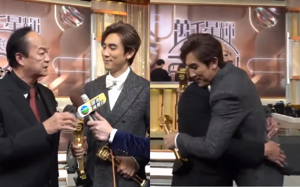 Ti Lung didn’t comment on the joke then, but he did appear later during Shaun’s post-award interview. “I know my son doesn’t want to be seen by me because I too (am in the same line of work),” he said as a segue. He opined that Shaun had only won thanks to luck. “Today you are very lucky,” Ti Lung told him. “The skills of the people who competed with you may not have lost to you, but (only because of) luck.”