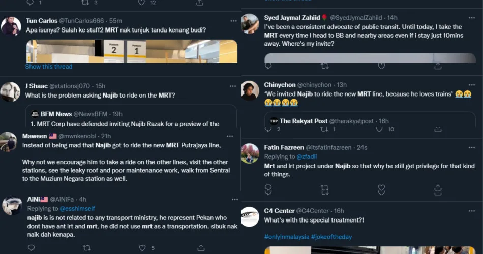 As reported by Berita Harian, MRT Corp responded to some questions and stated the reason why they invited Najib on that day. “In his tweet, he stated his interest to board the train so we replied to his tweet and invited him on the train,” said MRT Corp CEO Datuk Mohd Zarif Hashim. He did not however, comment on the backlash received by netizens. The response itself was also met with mixed reactions: