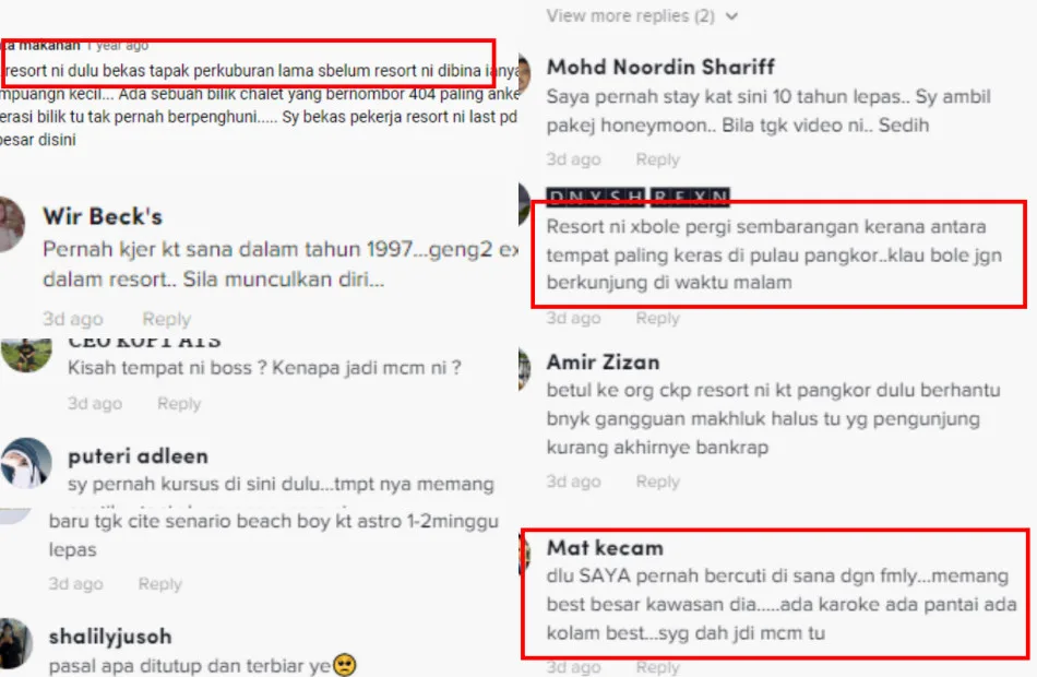 The water in the resort’s pool looks like something could be living in there waiting for its victims. Netizens commented on both the TikTok and YouTube video(s) with some sharing their holiday experiences at the resort before it was abandoned while others shared scary stories and urban legends about the abandoned location.