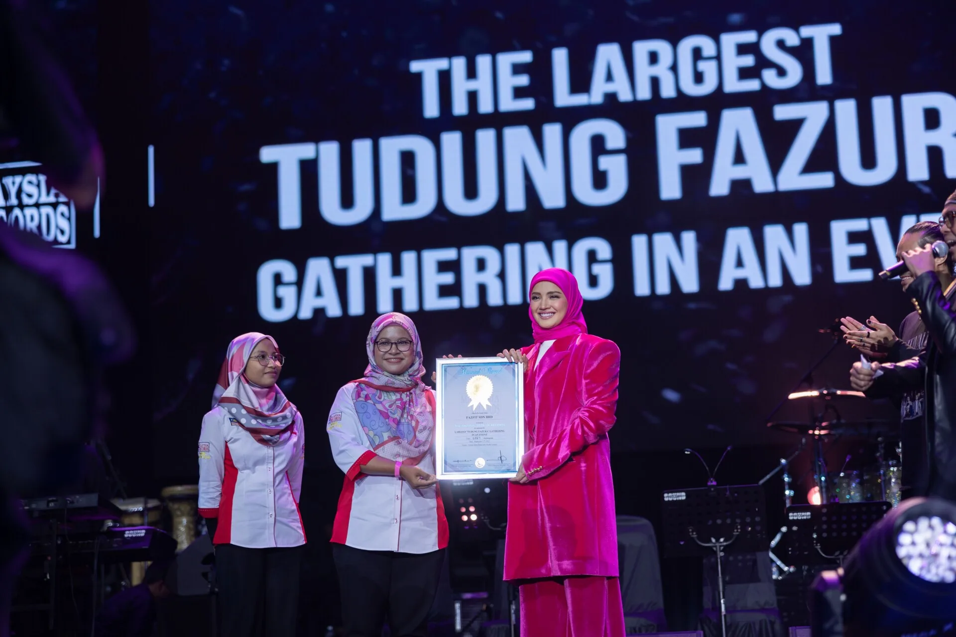 The “FAZTIVAL FAZURA 2022” event was no doubt a historic one for both Fazura and her fans. During the concert, it was announced that the event had successfully garnered two entries in the Malaysia Book of Records! The event breaks the record as “The Largest Tudung Fazura Gathering In An Event”. At the same time, “FAZTIVAL FAZURA” also breaks the record as “The Largest ‘Tudung Bawal’ ever produced in the country, which was displayed outside the venue entrance.