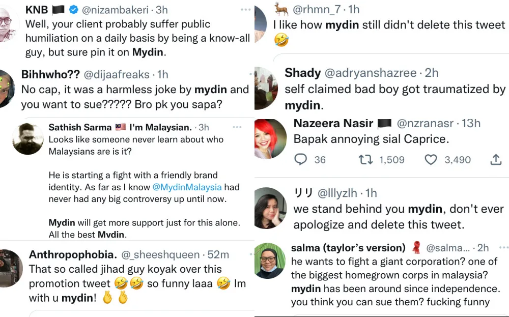 But from Mydin’s post on Twitter, netizens seemed outraged at the influencer’s response. Many of them stand behind Mydin saying that the influencer’s response was overly exaggerated. They also believe that if a court case does ensue, Mydin would come out winning.