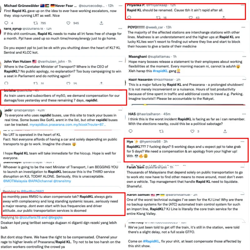 Many took to Twitter to express their anger for having to find last-minute alternatives to commute to work and go home late. As seen in the screenshots below, the people are demanding compensation for the damages caused and losses that they will be experiencing for the next 7 days.