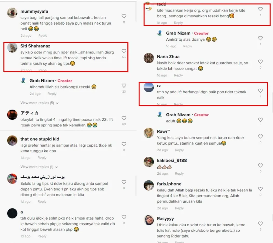 Grab rider Nizam or @grab_nizam on TikTok, posted a video earlier this week where he was delivering an order to a customer who lives in an apartment building. In the video, the rider shared that his customer had asked him to deliver her food to the 4th floor.