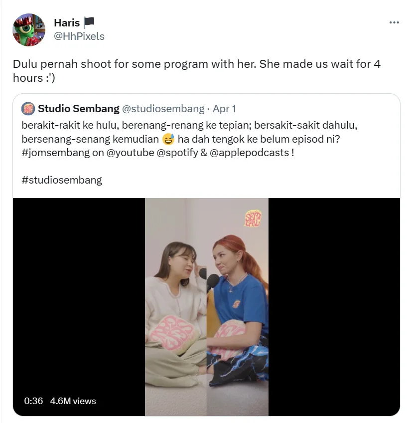 Another user on Twitter also pointed out that Janna was late during the filming of “Studio Sembang” with Amelia.
