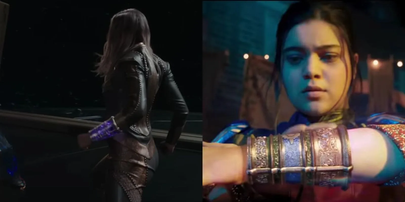 You may have noticed that in the four-way fight between Dar-Benn against Captain Marvel, Rambeau and Khan that the Accuser is wearing an interesting purple-glowing bracelet on her arm. In the third episode of the first season of “Ms Marvel”, we learned that Kamala Khan’s great-grandmother Aisha, who was working for a group called the Clandestines, found one of two bangles attached to a blue arm (which matches the colour of a Kree). The Clandestines desired the bangles as they possess magical and cosmic powers. It was this bangle that unlocked Kamala Khan’s latent mutant abilities and allowed her to access the Noor Dimension.