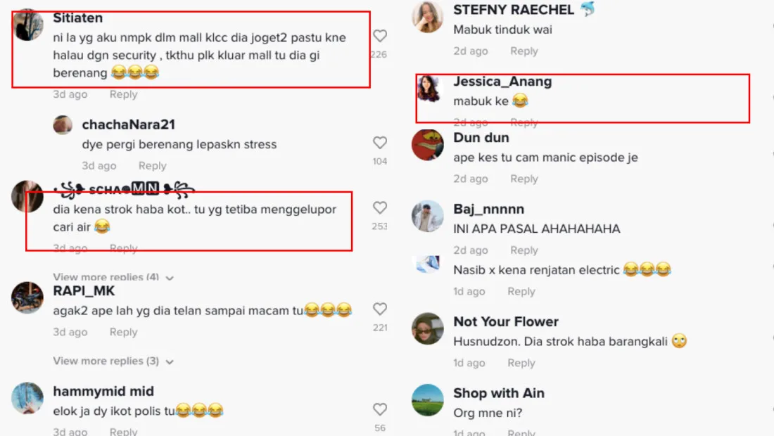 There was one netizen who claimed to have seen the same woman dancing around at Suria KLCC before being escorted out by security. “I didn’t think she’d go for a swim after being escorted by security at the mall,” they said.