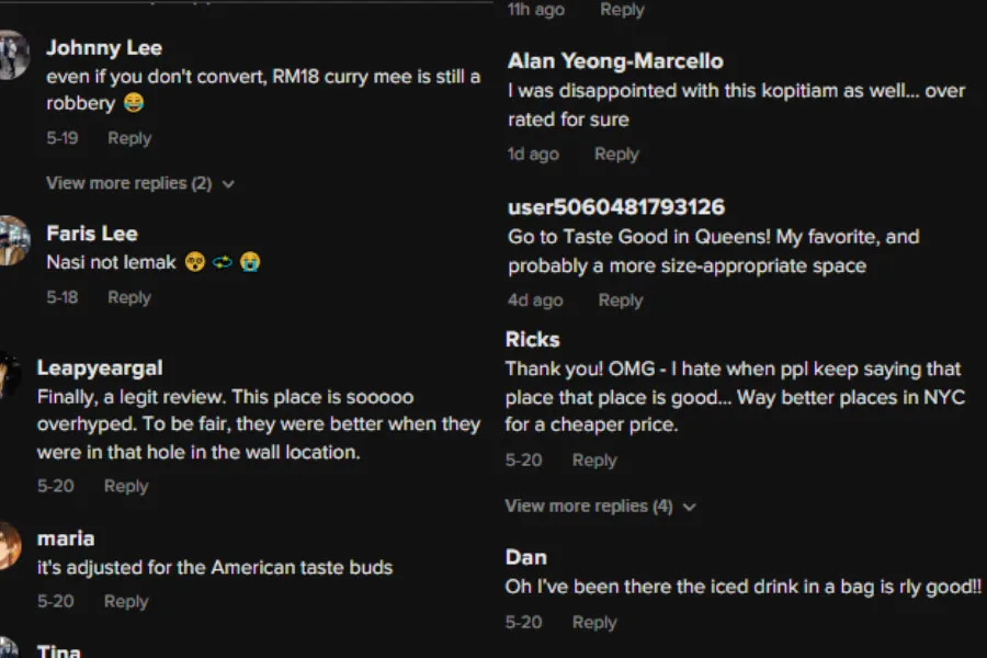 After the video was uploaded, many netizens shared their opinion of the review, including those who had previously visited the same restaurant. Some commented that the place was overrated while others claimed they enjoyed their meal when they ate there. A few even recommended other Malaysian restaurants in New York that had better food at a cheaper price.