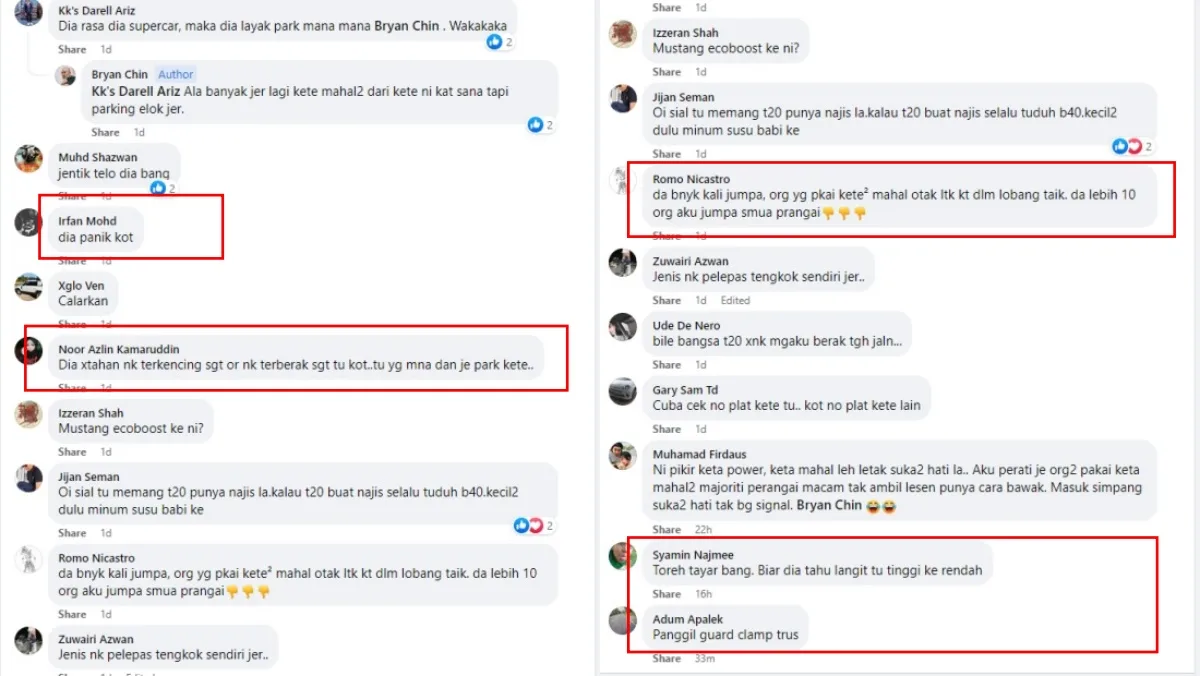 Earlier this week, Facebook user Brian Chin posted a video on the B40 Buat Perangai Apa Harini page showing a silver-coloured Ford Mustang car illegally parked on the pedestrian walkway facing against traffic in a shopping mall’s parking lot in Kuala Lumpur. The luxury vehicle also happened to be parked in front of the pillar where the emergency panic button is located.