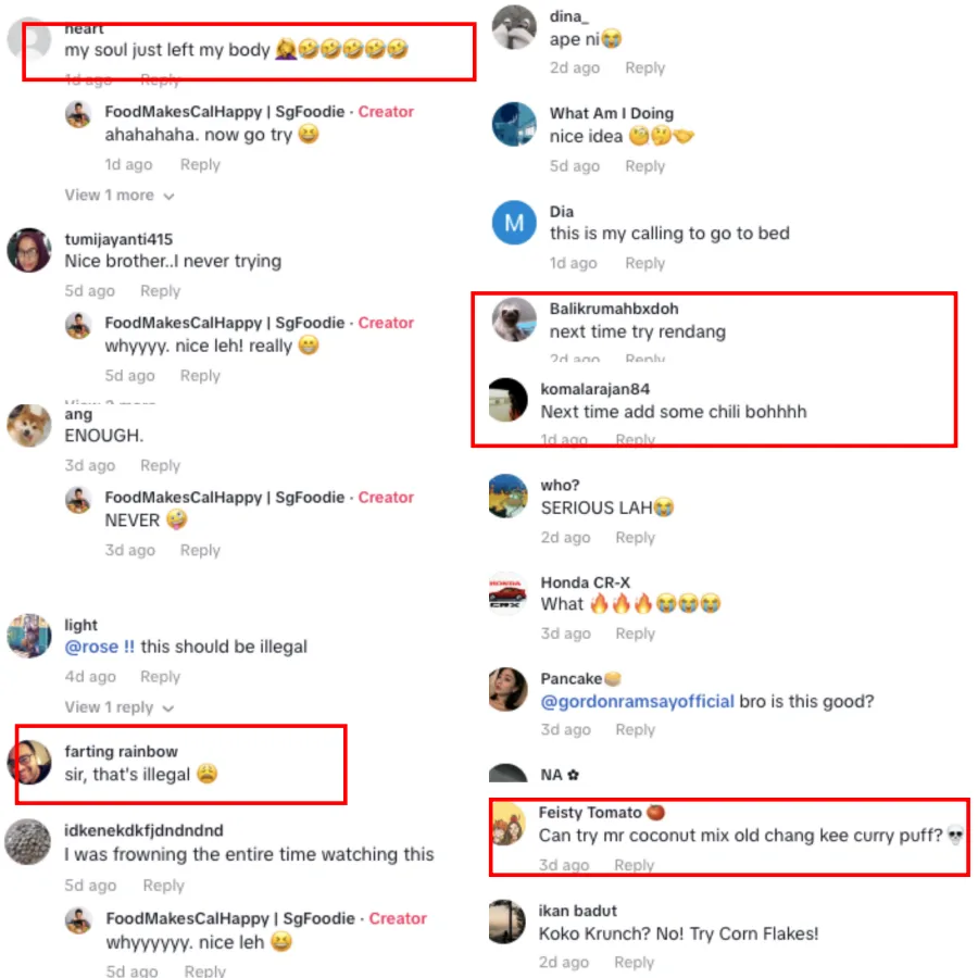 As seen in the screenshots below, some asked the content creator to stop with the weird food combinations while others gave some suggestions on what he should try next.