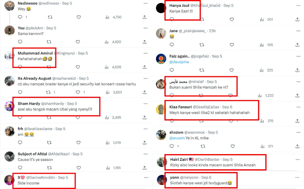The man in question was Rizky’s bodyguard, who surprisingly bears a striking resemblance to American rapper Kanye West. One netizen who shared the video on Twitter even asked, “Why is Kanye West (acting as) Rizky Febian’s security in KL?”.