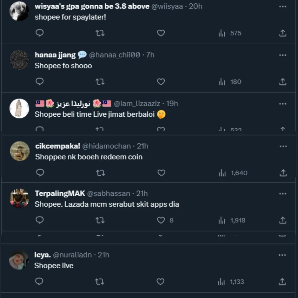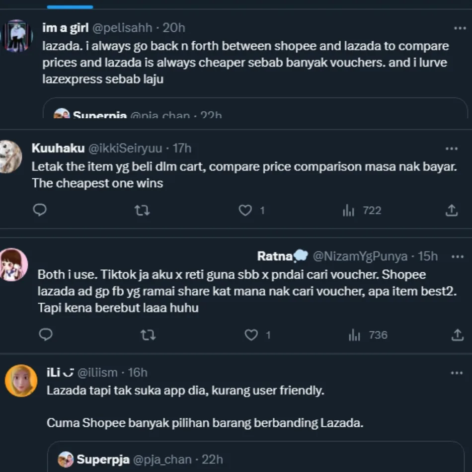 It looks like it’s a battle between Shopee and Lazada as netizens on Twitter discussed which one they’d always pick and why.