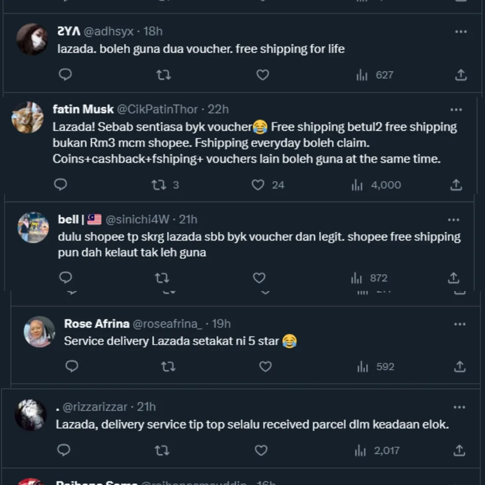 As for those who chose Lazada, many said it’s because the online store offers more shopping vouchers. Another reason was that the company offers free shipping for many, if not most, of the purchases made by customers. Netizens also acknowledged Lazada’s excellent delivery service, saying that their packages would always arrive on time and in good condition.
