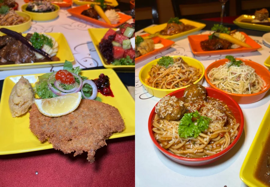 The Sunday Brunch offers diners a wonderful opportunity to indulge in an astounding variety of dishes curated to cater to diverse palates, featuring an array of appetizers, mains, and desserts; including three different paella and pasta, Iberico Pork Ribs, Crispy Piglet, Salads, Pork Schnitzel, Pig Tail, charcuterie and many more.